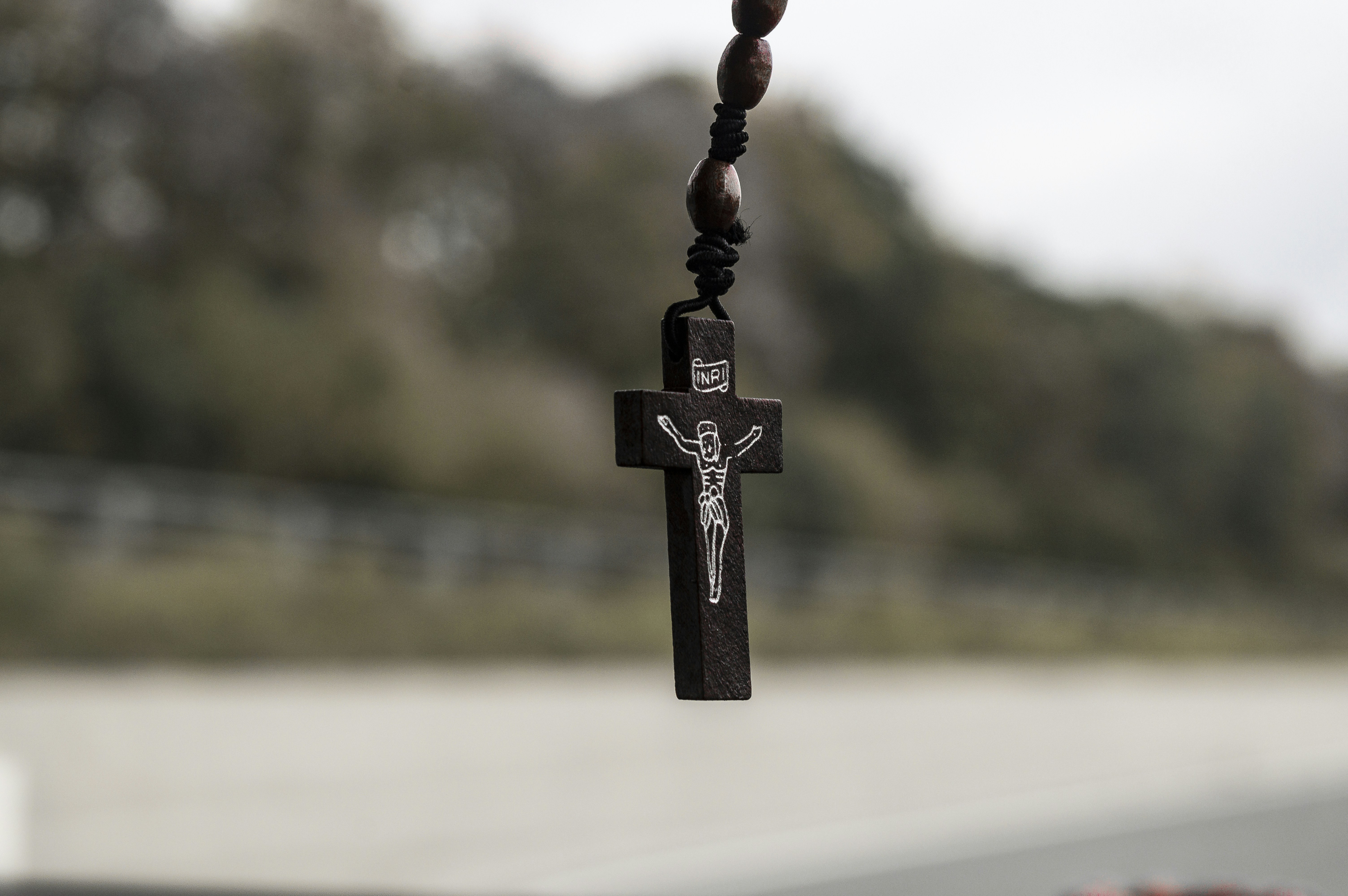 2. Hold the crucifix in your hand and make the sign of the cross.